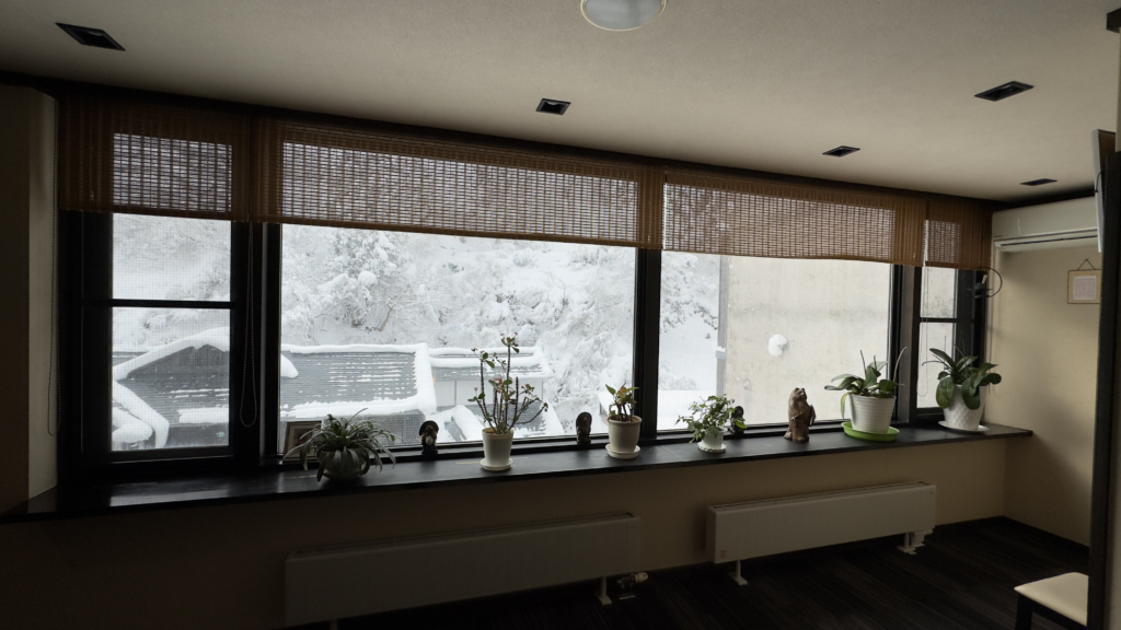 例年は1m程度雪が積もるそうなのでスノーブーツなどで雪道対策が必要です。
